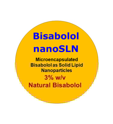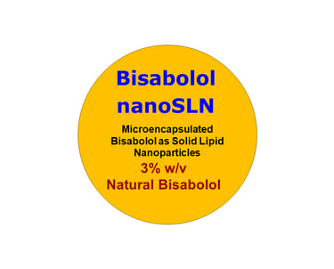 Bisabolol nanoSLN is Bisabolol microencapsulated in solid lipid nanoparticles (SLNs) of size above 100 nm as a delivery carrier. The carrier protects Bisabolol from degradation, enhancing its stability in the formulation. It also improves Bisabolol activity and penetration through the skin. Usually, less concentration is needed from the microencapsulated active ingredient compared to the pure un-encapsulated one. The particles are stabilized in pH balanced suspension.